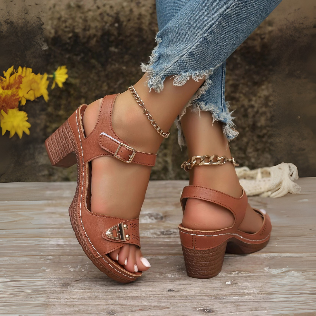 Ses détails dorés, son talon travaillé et ses finitions soignées apportent une touche chic à toutes vos tenues. Que ce soit pour aller au marché, au bureau ou à un dîner, vous marchez avec allure et confiance.