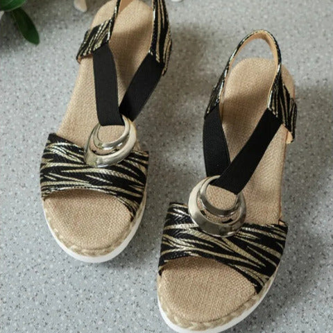 Avec leur anneau décoratif élégant et leur motif rayé chic, ces sandales s'adaptent à toutes vos tenues, de la jupe estivale aux jeans décontractés, vous garantissant un look impeccable en toute occasion.
