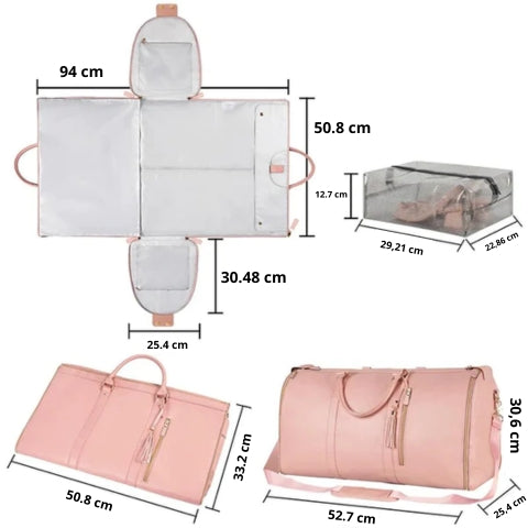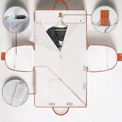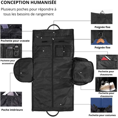 Notre sac peut être utilisé comme un excellent sac de voyage pour des occasions spéciales telles que des vacances, des mariages ou toute occasion où vous pourriez emmener vos meilleures tenues avec vous. À l'intérieur de notre sac, il y a plusieurs façons de fixer vos vêtements en position avant de le plier pour voyager.