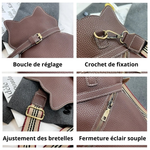 Un sac à bandoulière en forme de chat à la fois cool, épuré et élégant peut embellir votre silhouette. Son espace généreux et spacieux permet de transporter toutes vos nécessités avec style. Un look original et constitue également un cadeau idéal pour un ami amateur de félins ou bien pour vos proches !
